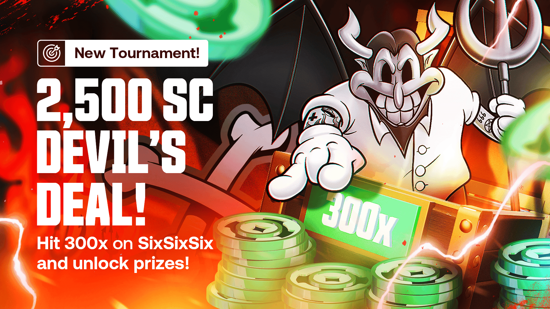 Unleash the dark power in SixSixSix and chase your fortune. Score a 300x hit and a slice of the 2,500 SC reward could be yours.